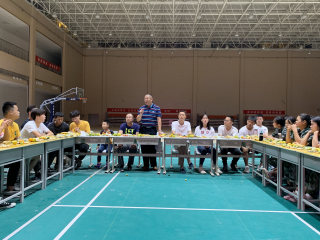 时间:2019年9月13日 地点:体育馆 人物:徐书记、陈科长、李科长、体育学院所有学生